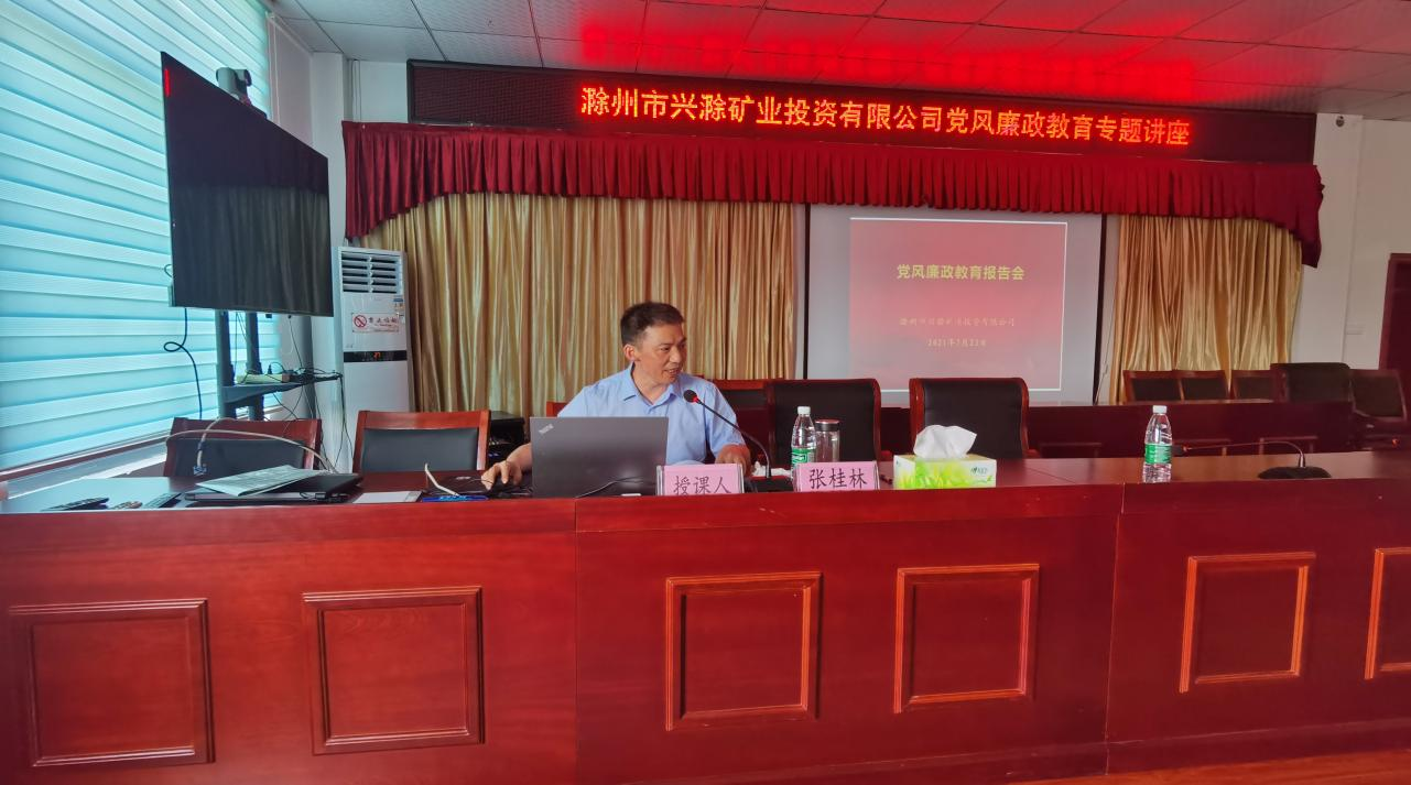 為進一步推深做實黨史學習教育,切實加強公司黨風廉政建設和反腐敗工作,促進黨風廉政教育在基層一線落地生根,7月23日,市礦投公司邀請市紀委監(jiān)委駐市財政局紀檢監(jiān)察組副組長張桂林赴興明礦業(yè)調研指導并作黨風廉政教育專題講座。公司經營層及相關工作人員約30余人聆聽了講座。