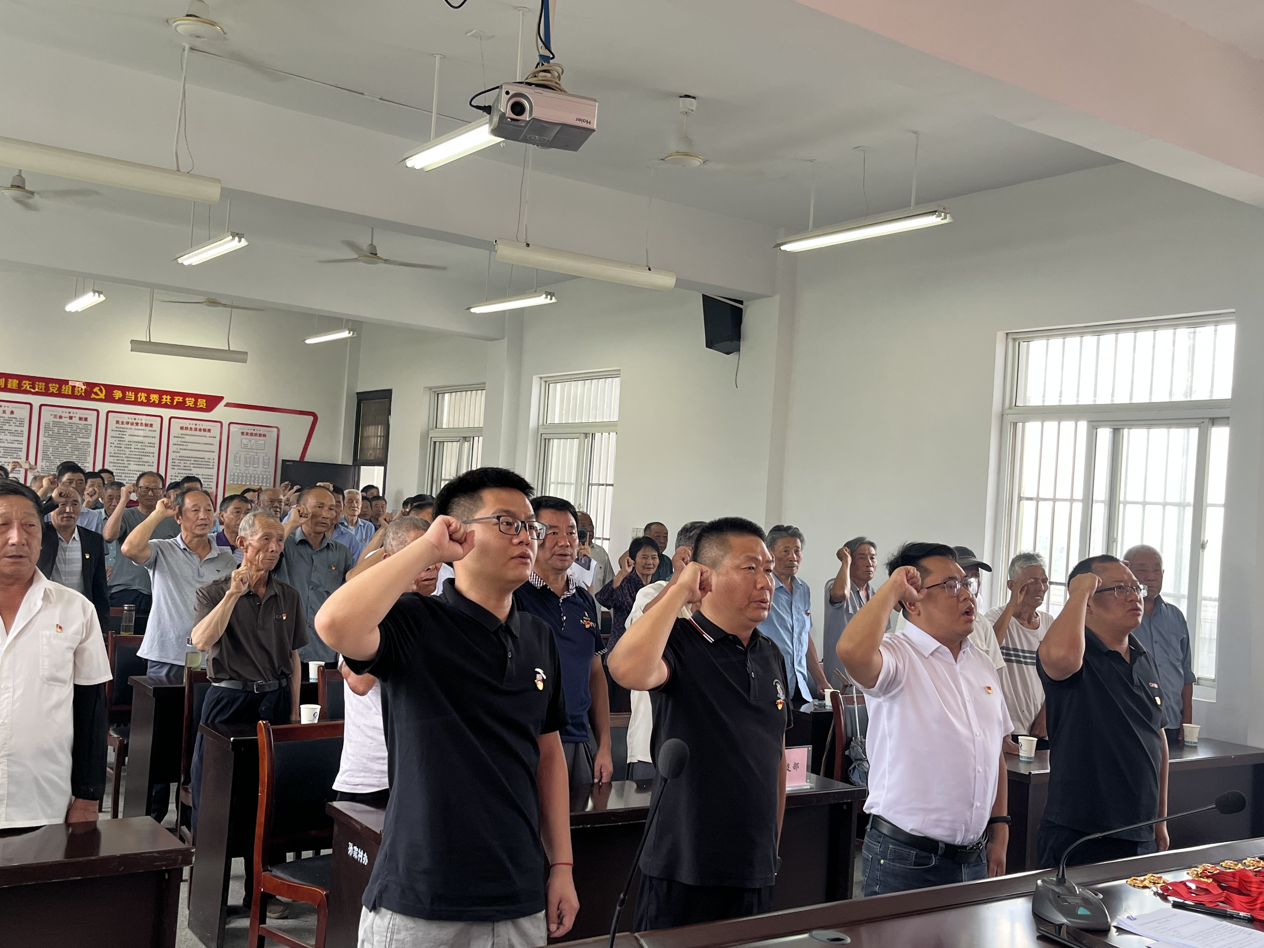 全體黨員緊握右拳,面向鮮紅的黨旗重溫了入黨誓詞;在全體黨員的見(jiàn)證下,孫家村黨總支書(shū)記趙陽(yáng)、興全礦業(yè)黨支部副書(shū)記許登科向7位老黨員同志頒發(fā)了“光榮在黨50周年”紀(jì)念章,激勵(lì)廣大黨員進(jìn)一步堅(jiān)定對(duì)黨的忠誠(chéng)熱愛(ài)和為共產(chǎn)主義事業(yè)奮斗終身的理想信念。