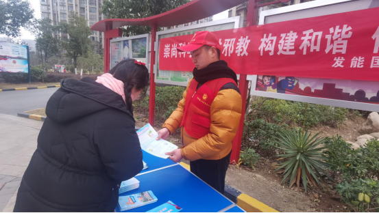 報告結束后,志愿者們還在社區(qū)內進行了反邪教宣傳,向過往居民散發(fā)反邪教宣傳單,從什么是邪教、邪教的特征、本質、如何防范等方面對群眾進行宣傳教育,使社區(qū)群眾進一步認識到了邪教組織的危害性,增強了的反邪教意識。