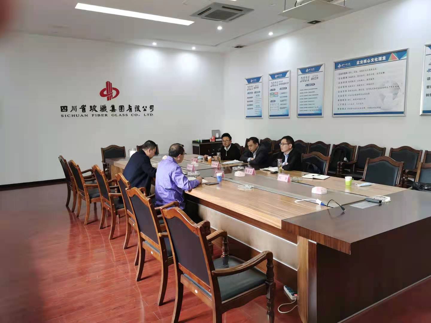 3月31日下午考察團首先來到了四川省玻纖集團有限公司,四川玻纖致力于玄武巖纖維研發(fā)近10 年,尤其是近5 年來先后成立了13個實驗室,先后攻克了多項玄武巖纖維生產(chǎn)過程中的技術(shù)瓶頸,研發(fā)出一整套池窯生產(chǎn)玄武巖連續(xù)纖維的生產(chǎn)工藝,具有完全自主知識產(chǎn)權(quán)的世界首條萬噸級玄武巖連續(xù)纖維池窯生產(chǎn)線,在四川玻纖天潤玄武巖科技有限公司,周利修一行參觀了玄武巖纖維生產(chǎn)線和產(chǎn)品展示現(xiàn)場,詳細(xì)了解了玄武巖纖維的生產(chǎn)現(xiàn)狀,四川玻纖集團副總經(jīng)理鄒巖輝陪同參觀。
