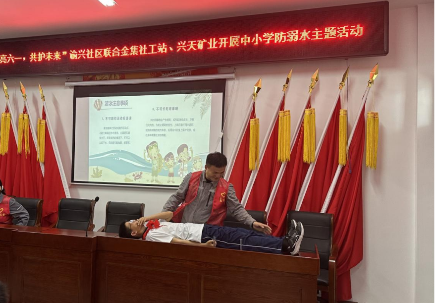 活動(dòng)現(xiàn)場,興天礦業(yè)志愿者通過發(fā)放防溺水知識(shí)手冊(cè)、播放防溺水科普視頻以及演示心肺復(fù)蘇等方式科普了基本防溺水及救護(hù)常識(shí),有效提高在場學(xué)生防溺水意識(shí)。