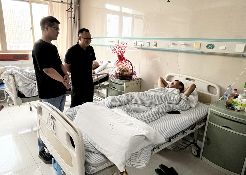 生產(chǎn)運(yùn)營(yíng)部經(jīng)理儲(chǔ)彪代表公司轉(zhuǎn)達(dá)了對(duì)患病職工的關(guān)心,并詳細(xì)了解治療恢復(fù)情況,囑咐他要保持良好心態(tài),積極配合醫(yī)院的治療,爭(zhēng)取早日康復(fù),回歸工作崗位。