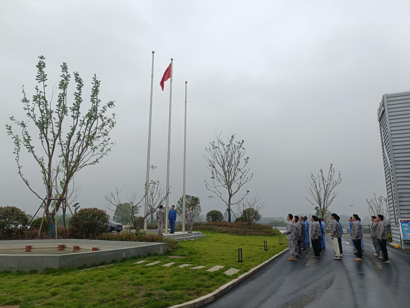 上午8時(shí)10分,升旗儀式正式開始。全體人員精神飽滿,列隊(duì)整齊,懷著無比崇敬的心情,莊嚴(yán)肅立。伴隨著雄壯嘹亮的國歌,五星紅旗冉冉升起,現(xiàn)場成員帶著對偉大祖國的崇高敬意行注目禮。
